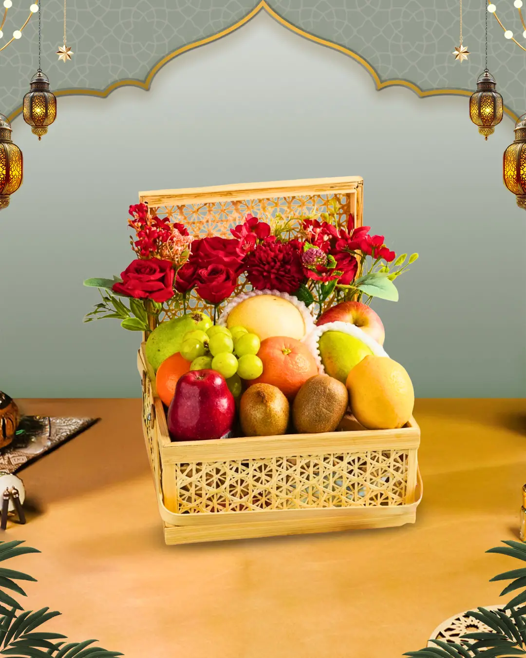 Parsel Buah Segar “Artisan Fruitful Hampers” dikemas rapi dalam box bambu premium, dibalut plastik wrap, dihiasi pita dekoratif dan bunga, parsel ini cocok sebagai hampers hari raya (idul fitri, natal, chinese new year), menjenguk kerabat sakit, ucapan selamat, maupun hadiah di acara lain.