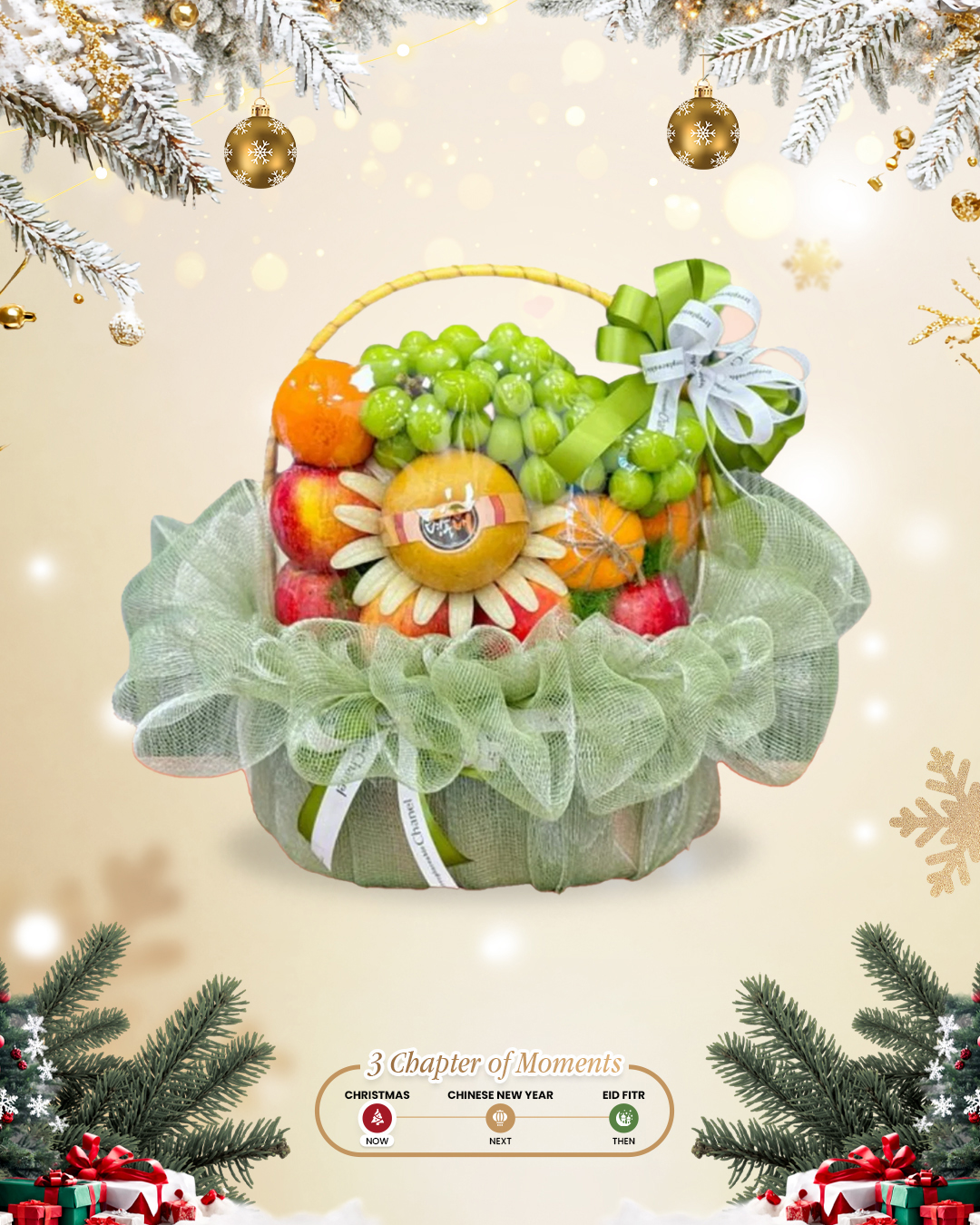“Parsel Buah Segar “”Emerald Fruit Basket” dikemas rapi dalam keranjang rotan cantik, dibalut kain tile dan dihiasi pita dekoratif, parsel ini cocok sebagai hadiah ulang tahun, menjenguk kerabat sakit, ucapan selamat, maupun hadiah di acara lain.