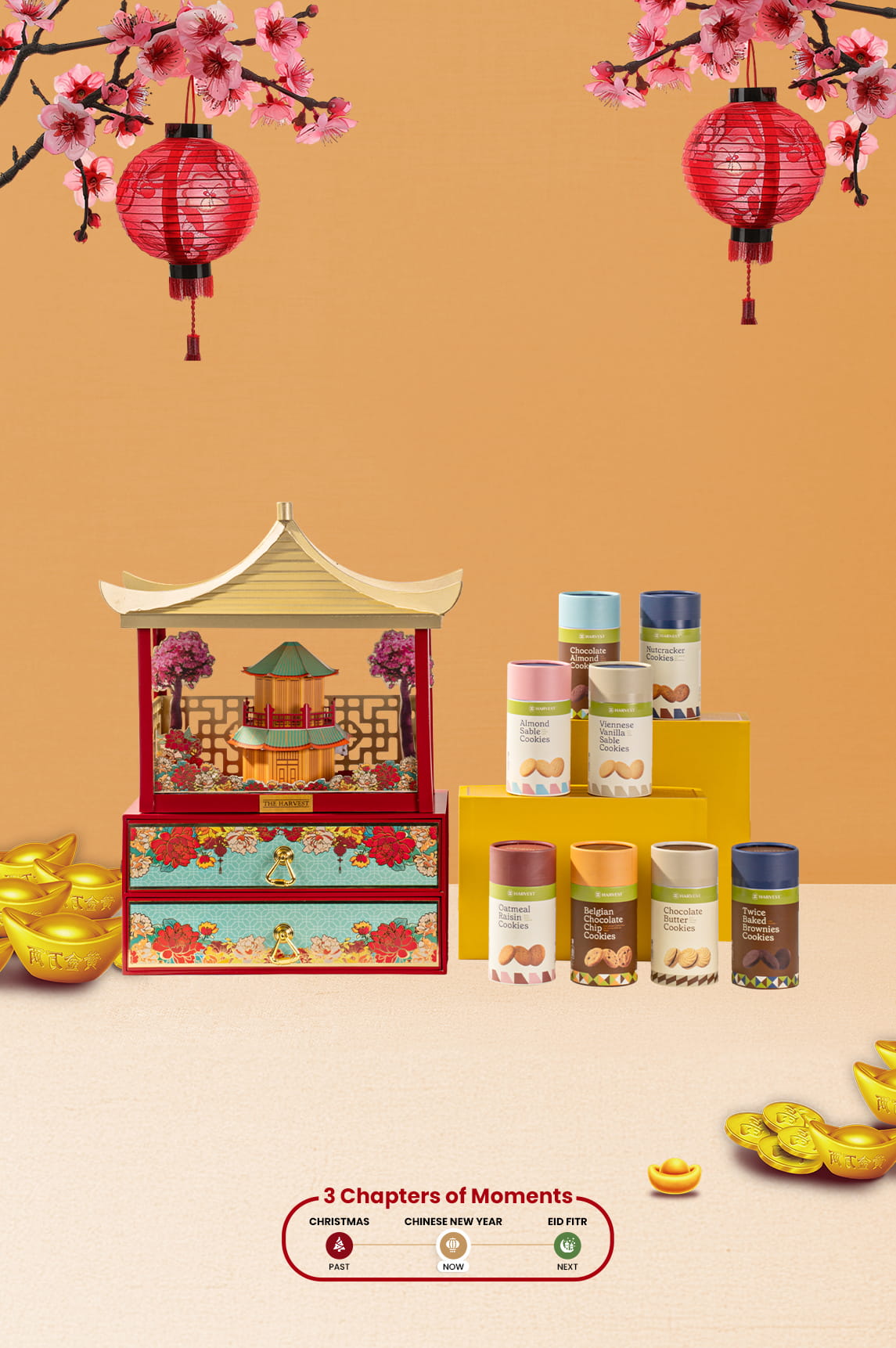 Eternal Serenity yang berisi Twice Baked Brownie Cookies, Oatmeal Raisin Cookies, Almond Sable Cookies, Chocolate Almond Cookies, Viennese Vanilla Sable Cookies, Belgian Chocolate Chip Cookies, Chocolate Butter Cookies, Nut Cracker Cookies