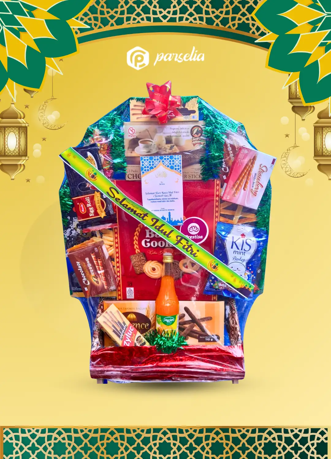 Motif parsel bertema Lebaran, mohon info sales untuk ketersediaan stok.