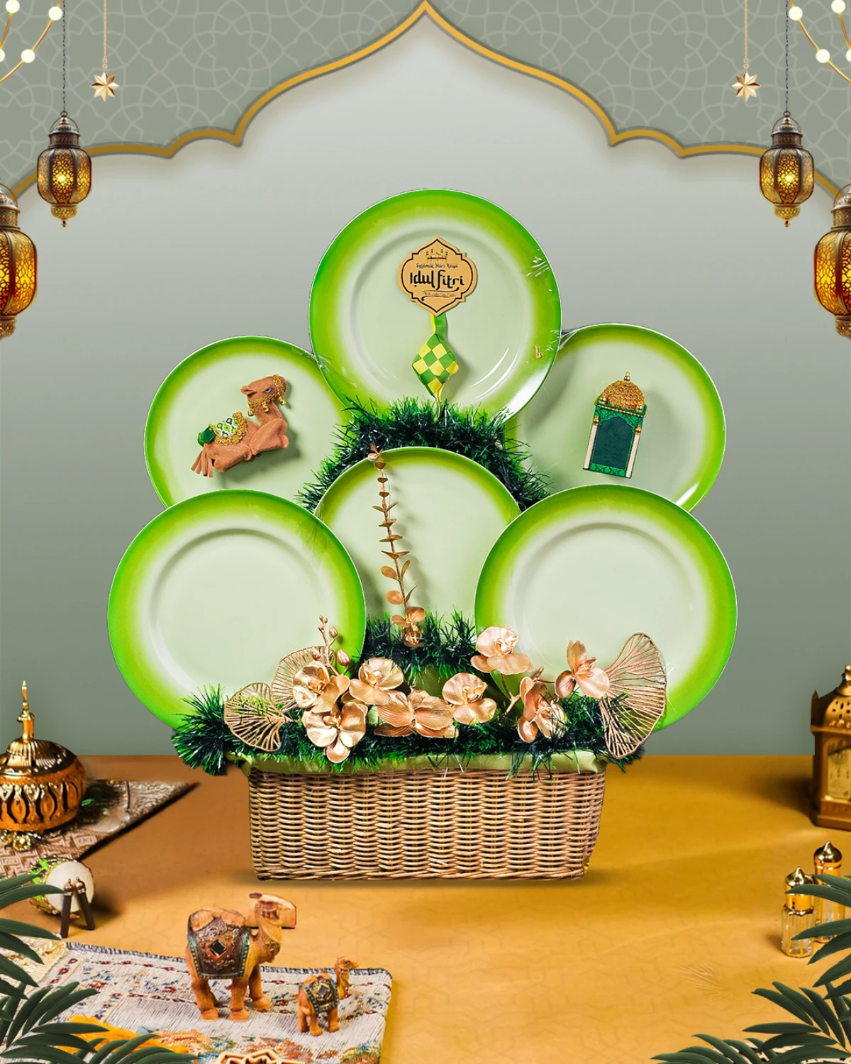 Parcel Signature Eid 17 Parcel Pecah Belah yang berisi 3 Pcs Dinner Plate, 3 Pcs Salad Plate, dan Eid Decoration Yang Cocok Untuk Rekan Bisnis