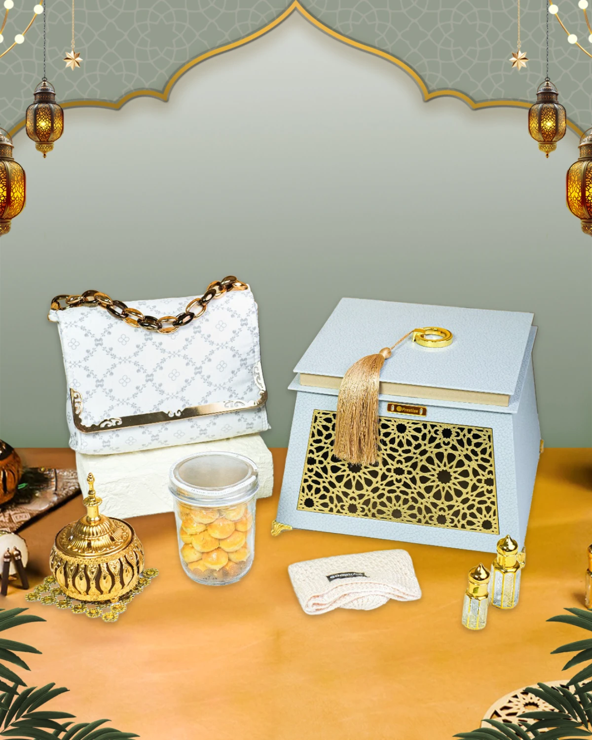 Parcel Signature Eid 49 Parcel Mix yang berisi Cookies, Mukena Alunna, Peci, dan Eid Decoration Yang Cocok Untuk Kolega/Teman